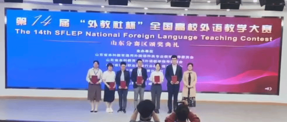 第十四届“外教社杯”全国高校外语教学大赛山东分赛区的比赛于520-21日在山东威海举行,beat365亚洲体育官方网站以王慧老师为主讲教师的参赛团队齐心协力,不畏挑战,通力合作,勇于创新,经过初赛、复赛和决赛三个阶段的激烈角逐,荣获山东分赛区英语专业组二等奖。