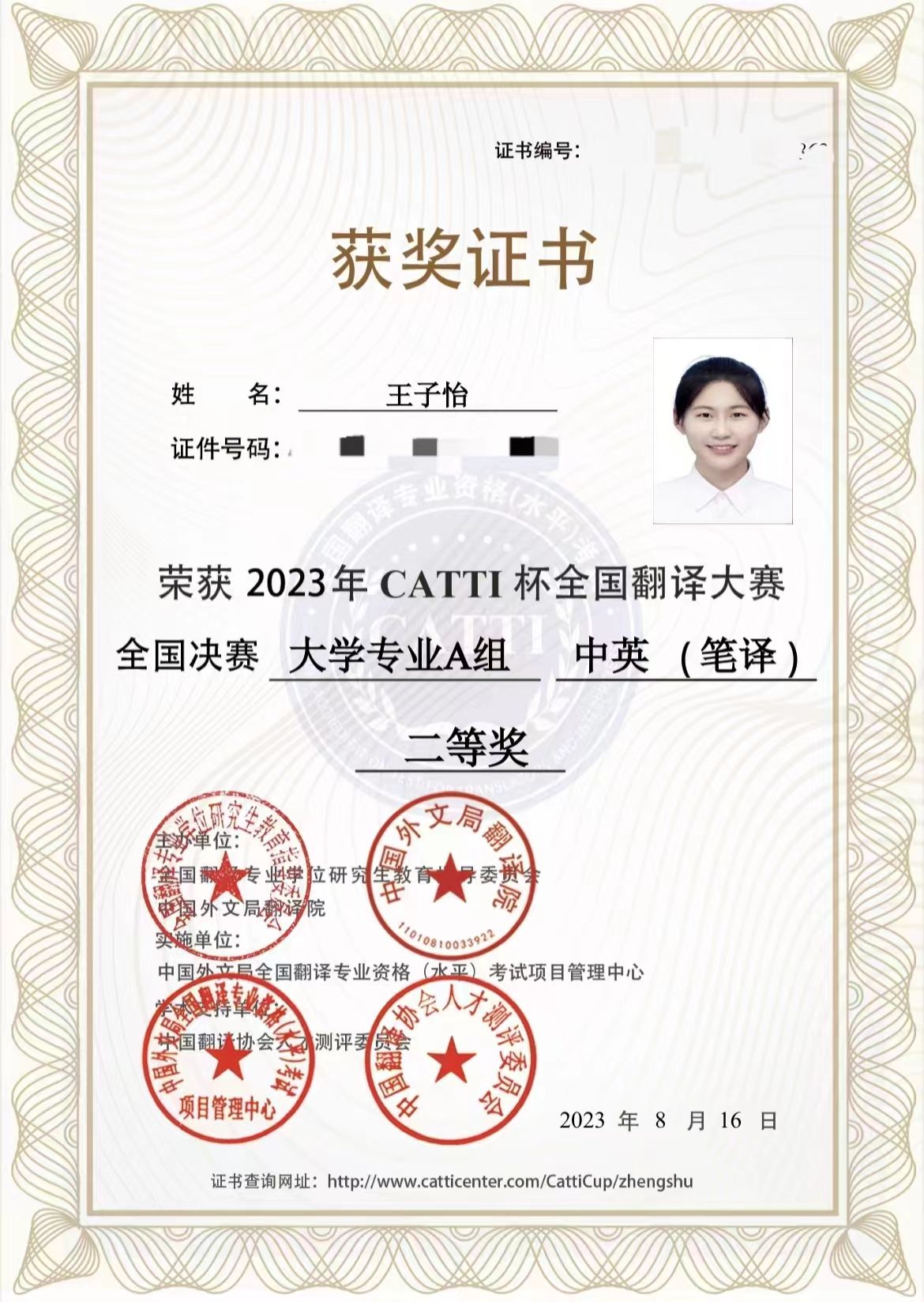 公司学子在2023年“CATTI杯”全国翻译大赛决赛中喜获佳绩