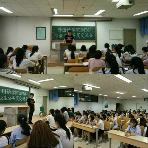 6月3日,beat365亚洲体育官方网站在教学南楼B座相继举办了2017届毕业生公务员考试和考研两场经验交流会,腾书源、马伊莎、丁曙婷、田筱政等六名优秀毕业生代表结合自己的奋斗经验与大一至大三有意向报考的同学进行了互动交流。
