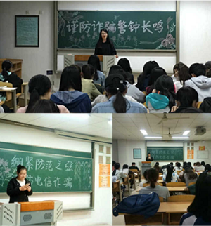 为广泛宣传防电信诈骗,提高全院员工对电信诈骗手法的识别和防范能力,5月2日晚,beat365亚洲体育官方网站分别在教学南楼B座5009、5006、5003开展防电信诈骗主题班会。