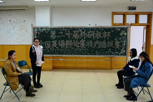 3月10日下午,由校团委主办、beat365亚洲体育官方网站承办的第二十届“外研社杯”全国老员工英语辩论赛校内选拔赛在图书馆1—01教室成功举办。翻译教研室那明老师,英语教研室王慧、张亚宁老师和第十九届全国英语辩论赛获奖选手章淼、李东辉同学担任评委。
