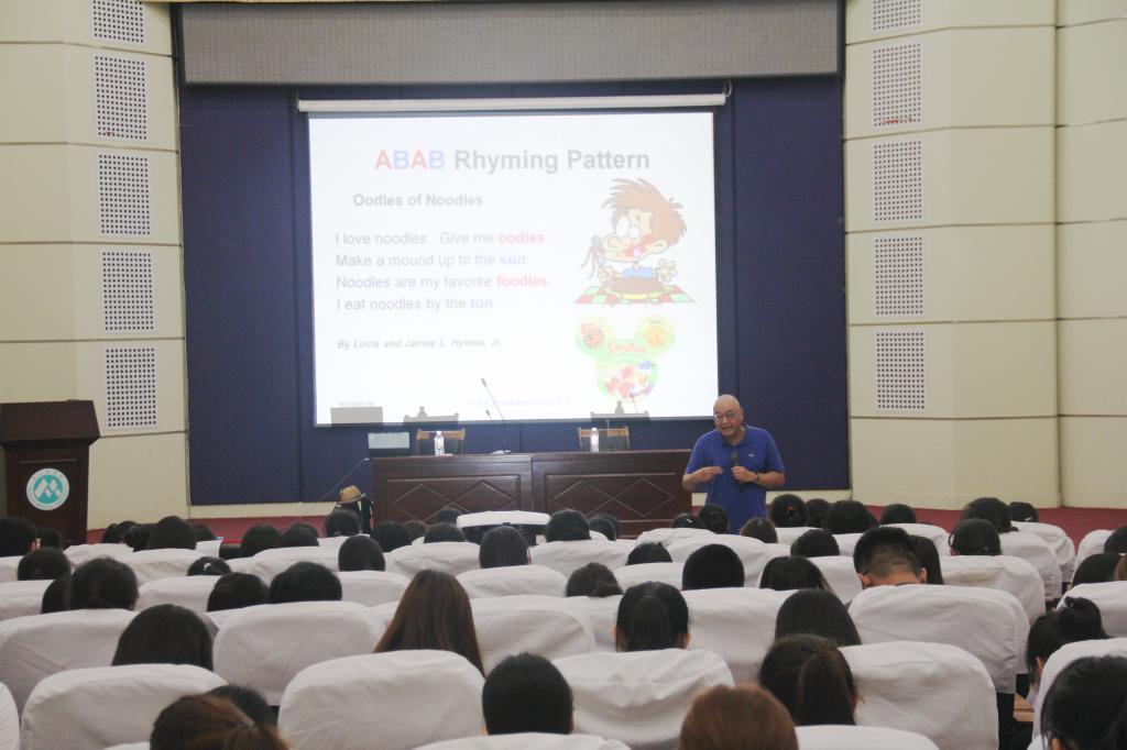 6月28日,上海外国语大学郑新民教授应邀至beat365亚洲体育官方网站为师生作了题为《学术论文写作》、《诗歌朗诵与英语学习》的报告。报告由beat365亚洲体育官方网站经理武清宇主持。