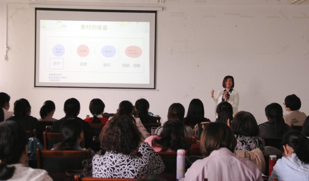 会上,陈静老师汇报了赴烟台大学参加高校外语慕课建设及混合式教学理念与实践研修班的学习所得。汇报聚焦外语慕课的教学理念与实践,通过“线上导学+线下面授+线上拓展”的混合式研修形式,就外语慕课及混合式教学理念、慕课教学设计、慕课视频制作以及混合式教学实践等内容进行了阐述。纪伟伟老师立足于自己的微课制作心得,从微课制作软件Camtasia Studio的使用技巧等技术层面带领大家进行了现场演练,并与大家分享了包括PPT设计、微课录制、使用方法等经验,演练由浅入深,示范性强。新颖的教学形式引起与会老师极大兴趣,大家就微课相关内容展开了积极的交流。