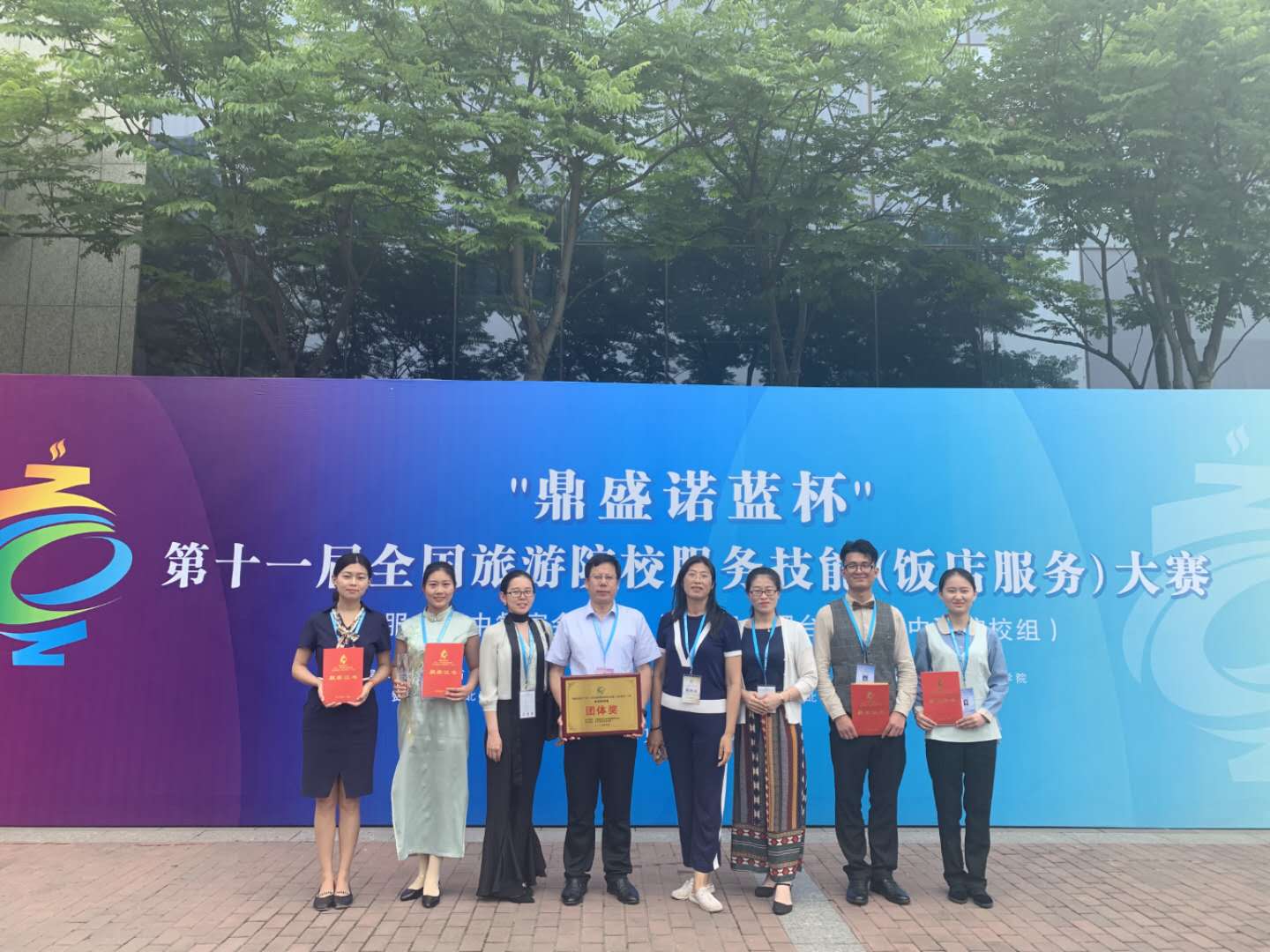 第十一届全国旅游院校服务技能(饭店服务)大赛于5月16日-19日在杭州举行,公司4名旅游管理专业员工组成的代表队荣获团体一等奖。邢桂芝、孙玉明、孟乐云、李冰分别参加了中餐宴会摆台、西餐宴会摆台、中式铺床和鸡尾酒调制四个项目的比赛。