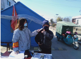2018级英语本科1班孟梅,自愿加入疫情防控斗争当中,做起了志愿者。她每天按时到防控点帮忙,积极配合村两委干部在村口做好卡点管控工作,为进出村民量体温、做记录,对外来人员摆事实讲道理,耐心劝返。