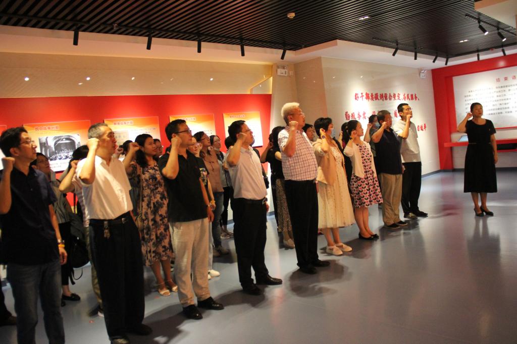 参观结束后,全体参观人员在领誓人李楠书记的带领下,面对党旗举起右拳,重温了入党誓词。