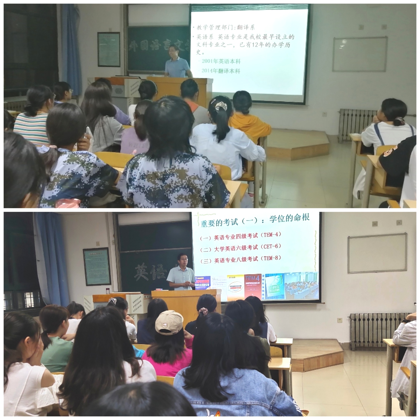 英语系主任张勇做了英语专业情况介绍,介绍了英语专业团队力量、教学条件及就业考研情况,讲解了有关英语专业的考试类型及考核方式,并特别介绍了英语专业课程设置,演示了新生选课的具体流程及注意事项。