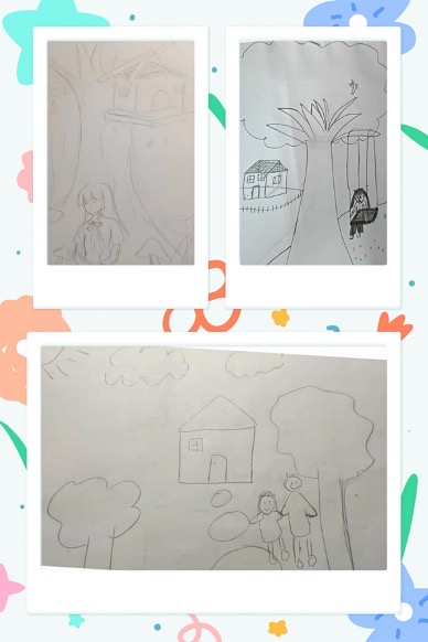 本次团体辅导包括个人绘画、房树人测验讲解和交流分享三个环节。活动初始,同学们以“房”“树”“人”为内容进行作画。完成绘画后,王云萍老师详细讲解了三要素的内涵、三者之间的关系,其位置、大小、线条等细节投射出的心理状态、性格特征等内容。随后,同学们对自己的绘画作品进行分析,解读自己的内心世界,并积极分享了自己的感受。