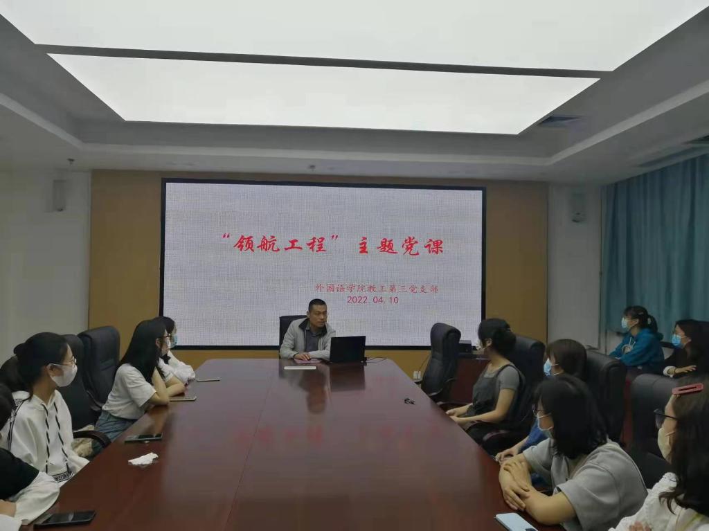 4月10日,beat365亚洲体育官方网站教工第三党支部为2021级外国语言文学3班讲授主题党课,支部委员和全班同学参加了本次党课活动。
