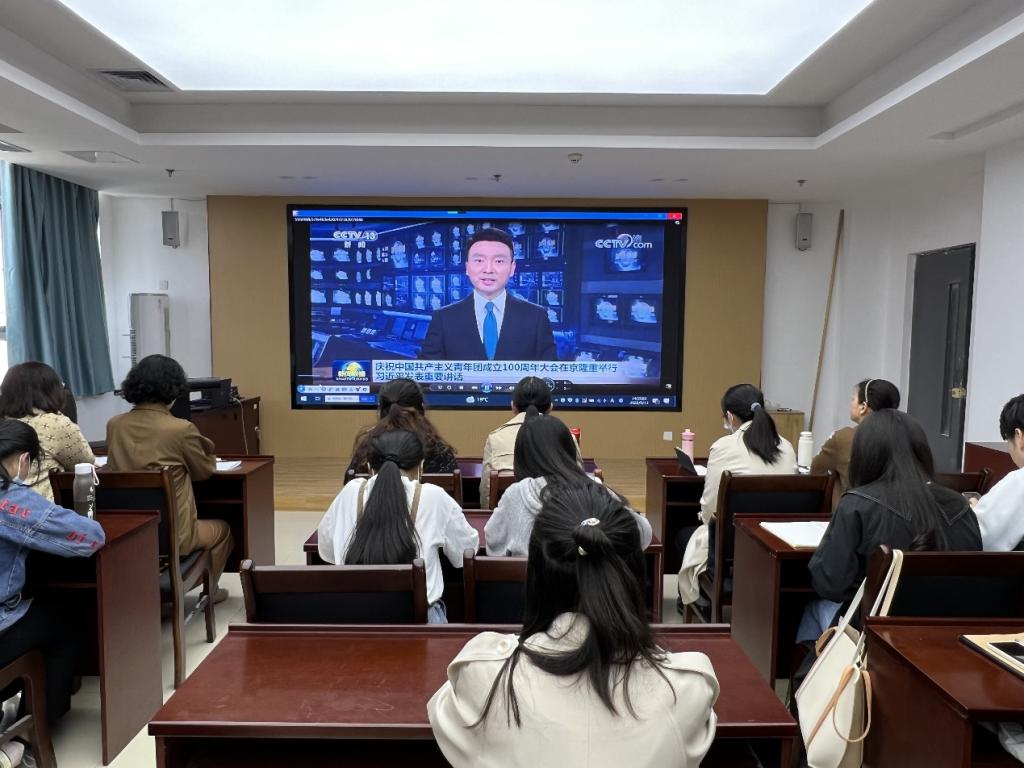 武清宇教授给大家上了一堂题为“弘扬五四精神,勇担青春使命”的党课,从中国共青团现阶段基本任务,到学习弘扬五四运动精神,带领大家学习了习近平总书记对新时代中国青年提出的六点要求,并一起观看了“庆祝中国共产主义青年团成立100周年大会在京隆重举行—习近平发表重要讲话”的新闻片段。