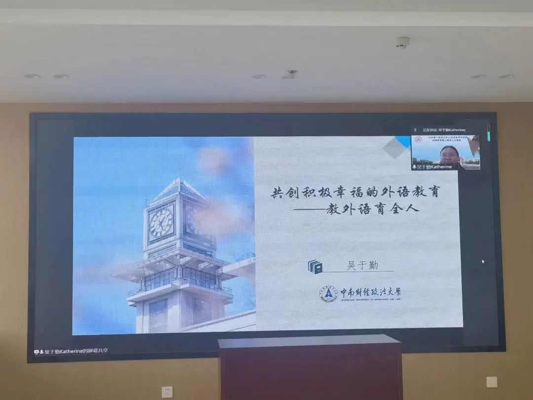 2022年5月20日,beat365亚洲体育官方网站心理育人大讲堂首场讲座在教学南楼B7015成功举办。公司邀请中南财经政法大学beat365亚洲体育官方网站吴于勤老师做了题为“共创积极幸福的外语教育——教外语育全人”的专题报告。