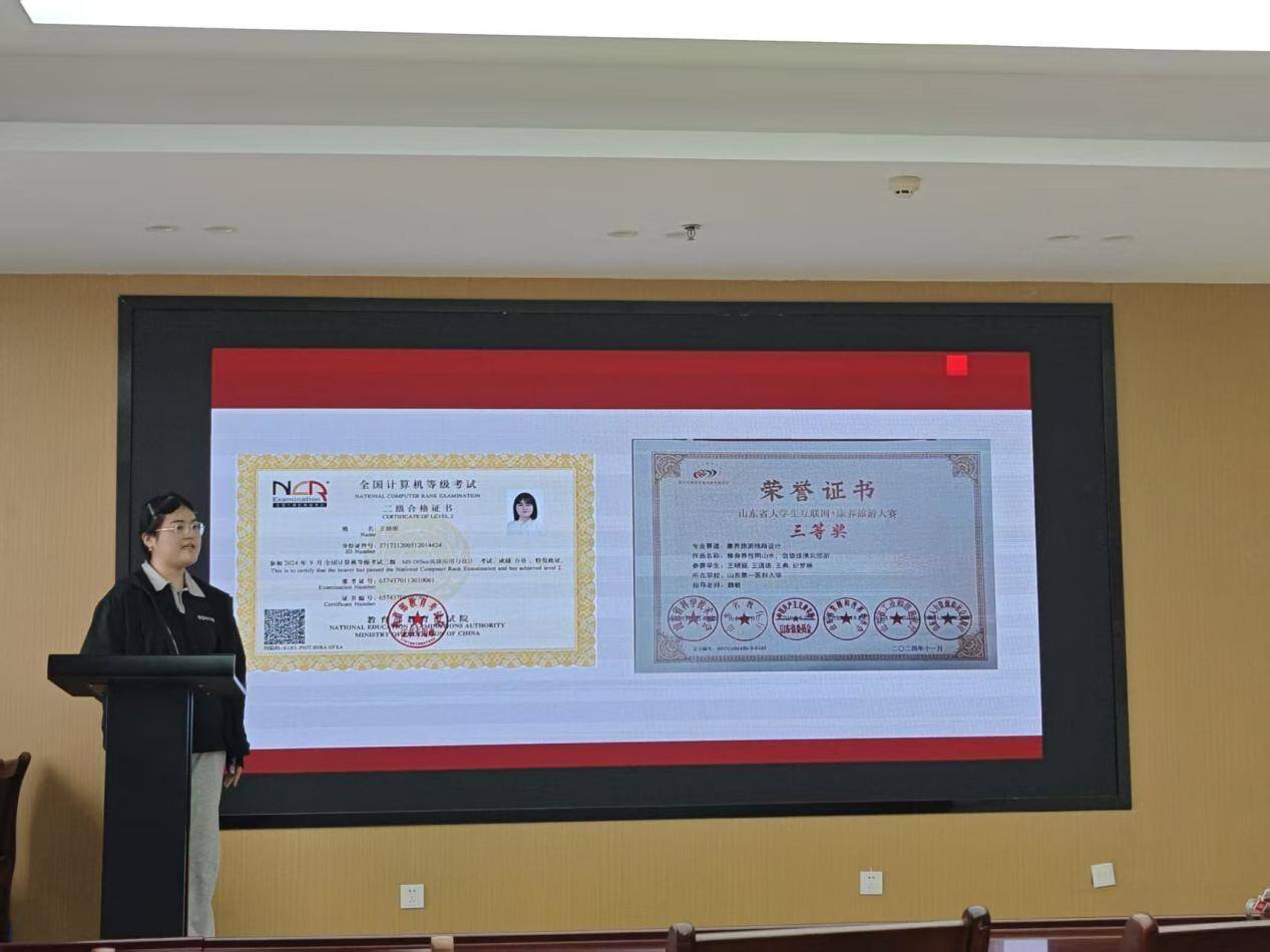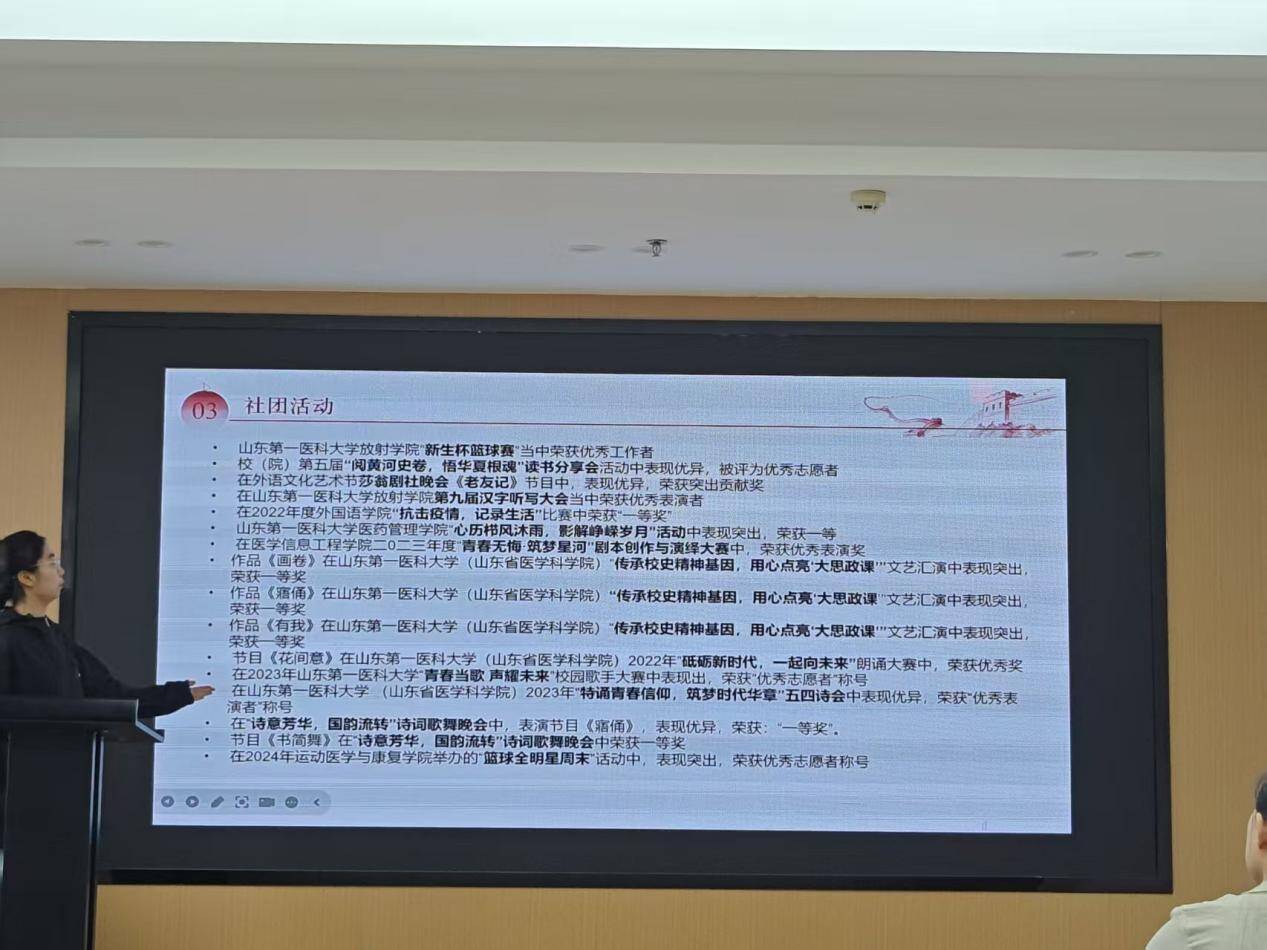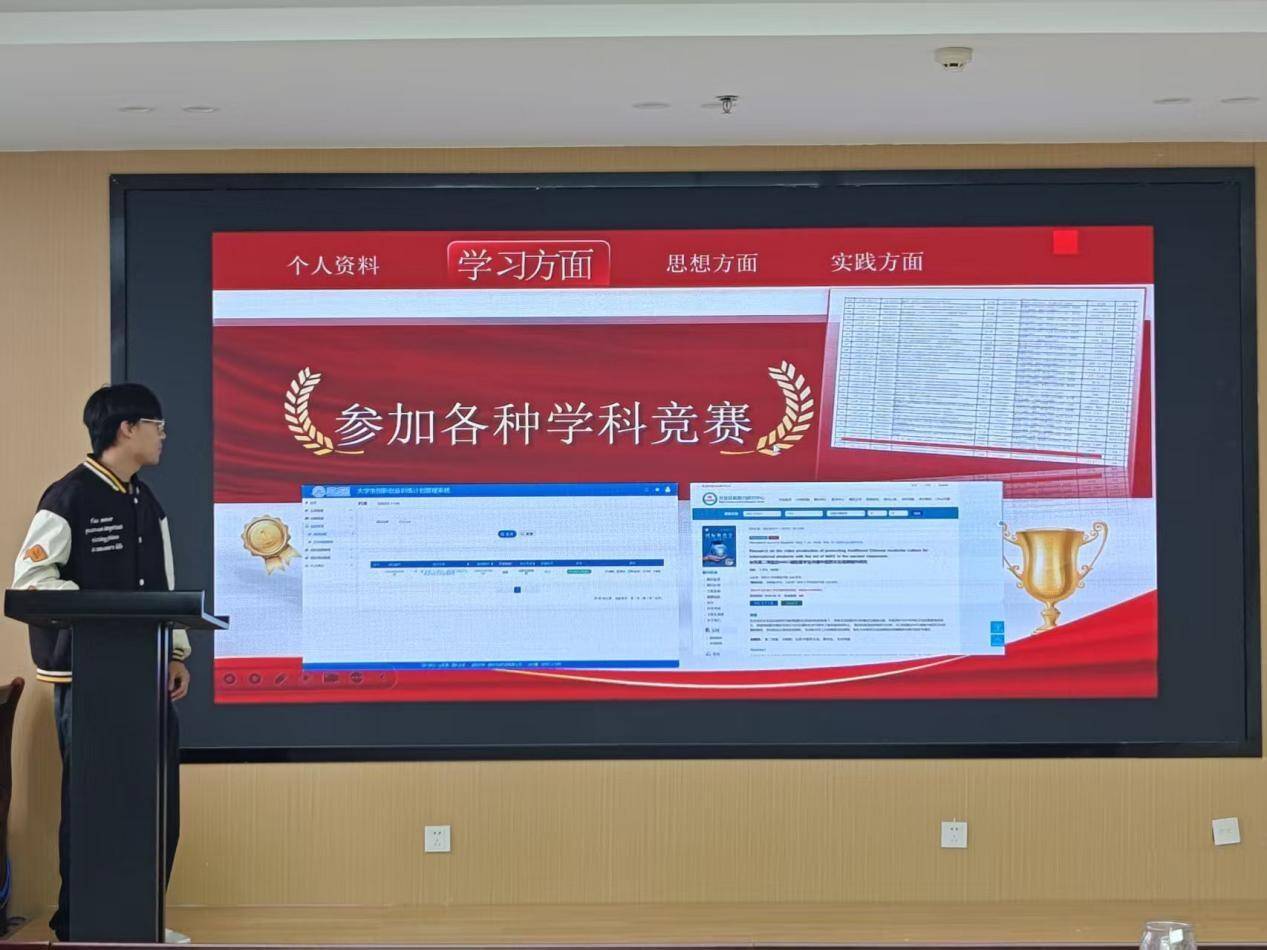 答辩现场,候选人们依次上台,以PPT形式为载体,从思想品德、学业成绩、社会实践、比赛经历等多个维度,全方位进行了汇报展示,展现了自己在大学期间的成长与收获。每一位候选人都以真实的体验,扎实的成绩和饱满的热情诠释何为青春,何为奋斗。